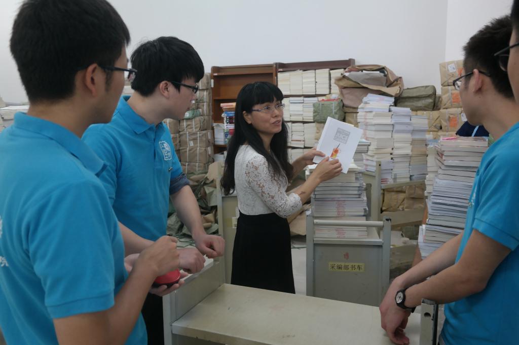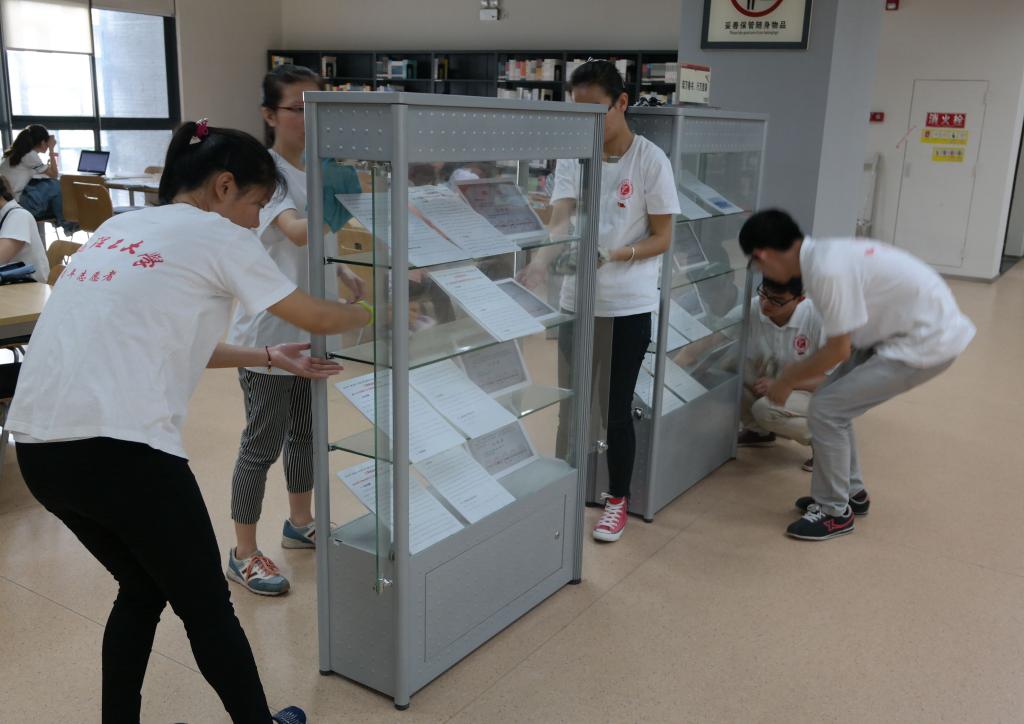 5月31日,学院毕业生党员们穿着志愿者服装,胸前佩戴党徽,在图书馆老师的带领下,在熟悉了图书馆整体布局后分工将图书馆2楼至5楼的所有玻璃展柜擦拭得干净明亮。6月1日—3日,他们协助老师开展图书编目,接着将图书打包整理,然后放在推车上从采编室送到各个书库和阅览室,最后整齐地放到书架上。几天的短暂志愿服务让同学们感受到了图书馆工作的重要和不易,体会到了劳动的光荣和美丽,图书馆老师表示深深的感谢。